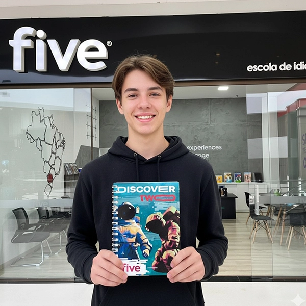 Imersão: Precisamos viver o mundo dentro da Five, por isso, imergir nos conteúdos e nas temáticas da nossa escola é extremamente importante durante o curso. Nós ensinamos na prática, desde nossas aulas de cooking class até mesmo nos games interativos dos nossos materiais.